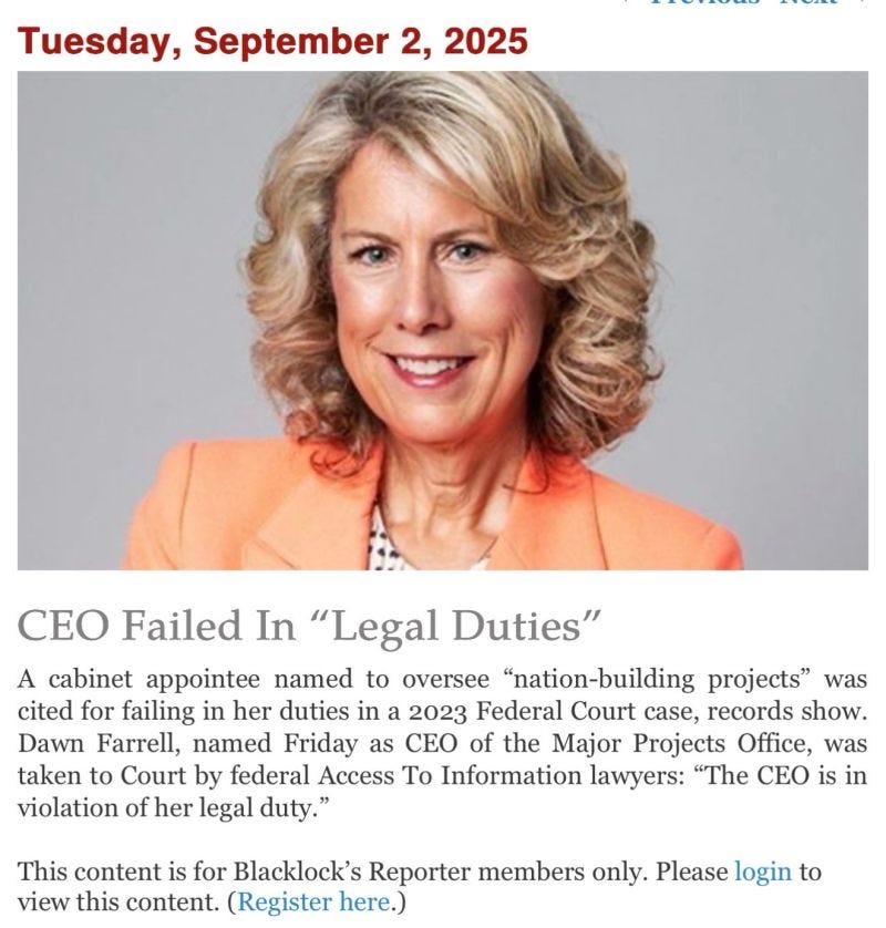 In a recent post, Joseph Connors raised concerns about Carney’s selection of Dawn Farrell to lead the proposed “Major Projects Office.” (Read his full post here: New "Major Project Office")