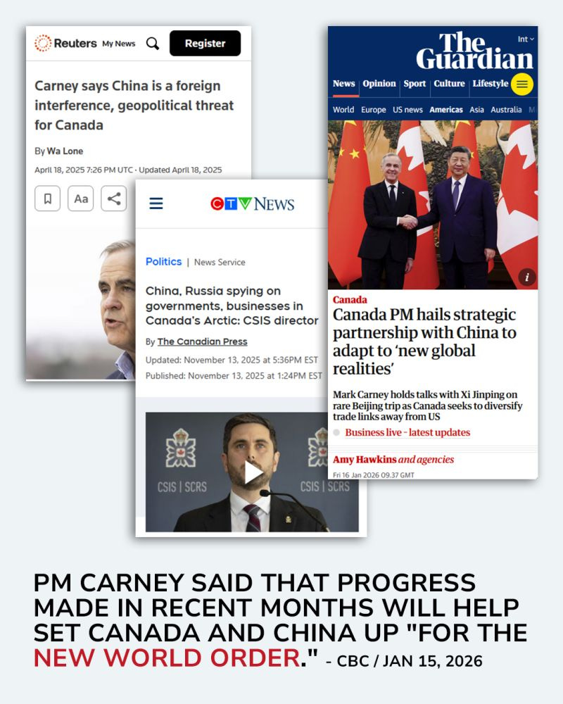 We just went from "Carney says China is a foreign interference, geopolitical threat for Canada" to "Canada PM hails strategic partnership with China" in less than a year.